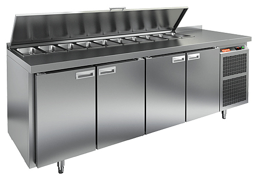 Стол для салатов HICOLD SL1-1111GN используется на предприятиях общественного питания и торговли для хранения и обработки ингредиентов, используемых для приготовления пиццы, салатов и других блюд, а также для охлаждения и кратковременного хранения скоропортящихся продуктов и напитков. Модель совмещает в себе рабочую поверхность и охлаждаемый объем, что значительно упрощает работу повара, так как все необходимые компоненты всегда находятся под рукой. Корпус и столешница выполнены из нержавеющей стали.