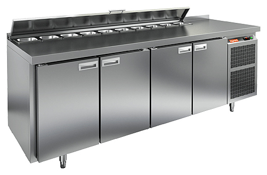 Стол для салатов HICOLD SL2-1111SN используется на предприятиях общественного питания и торговли для хранения и обработки ингредиентов, используемых для приготовления пиццы, салатов и других блюд, а также для охлаждения и кратковременного хранения скоропортящихся продуктов и напитков. Модель совмещает в себе рабочую поверхность и охлаждаемый объем, что значительно упрощает работу повара, так как все необходимые компоненты всегда находятся под рукой. Корпус и столешница выполнены из нержавеющей стали.
