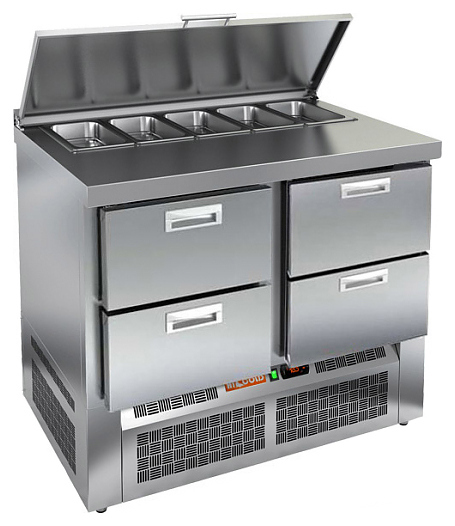 Стол для салатов HICOLD SLE1-22GN используется на предприятиях общественного питания и торговли для хранения и обработки ингредиентов, используемых для приготовления пиццы, салатов и других блюд, а также для охлаждения и кратковременного хранения скоропортящихся продуктов и напитков. Модель совмещает в себе рабочую поверхность и охлаждаемый объем, что значительно упрощает работу повара, так как все необходимые компоненты всегда находятся под рукой. Корпус и столешница выполнены из нержавеющей стали.
