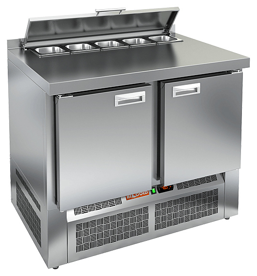 Стол для салатов HICOLD SLE2-11GN З используется на предприятиях общественного питания и торговли для хранения и обработки ингредиентов, используемых для приготовления пиццы, салатов и других блюд, а также для охлаждения и кратковременного хранения скоропортящихся продуктов и напитков. Модель совмещает в себе рабочую поверхность и охлаждаемый объем, что значительно упрощает работу повара, так как все необходимые компоненты всегда находятся под рукой. Корпус и столешница выполнены из нержавеющей стали.