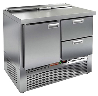 Стол для салатов HICOLD SLE2-12SN О используется на предприятиях общественного питания и торговли для хранения и обработки ингредиентов, используемых для приготовления пиццы, салатов и других блюд, а также для охлаждения и кратковременного хранения скоропортящихся продуктов и напитков. Модель совмещает в себе рабочую поверхность и охлаждаемый объем, что значительно упрощает работу повара, так как все необходимые компоненты всегда находятся под рукой. Корпус и столешница выполнены из нержавеющей стали, задняя стенка - из оцинкованной стали.