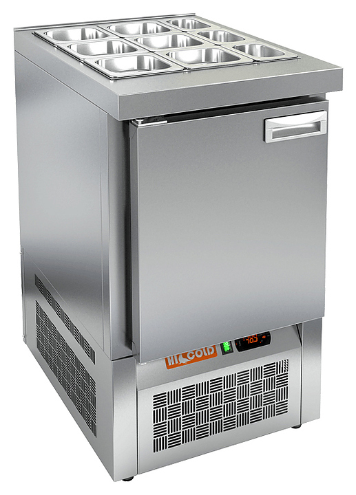 Стол для салатов HICOLD SLE3-1GN О используется на предприятиях общественного питания и торговли для охлаждения и кратковременного хранения ингредиентов, используемых для приготовления салатов, закусок и сэндвичей, а также других скоропортящихся продуктов и напитков. Корпус и столешница выполнены из нержавеющей стали.