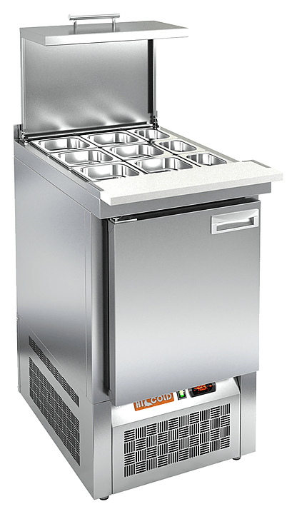 Стол для салатов HICOLD SLE3-1GN используется на предприятиях общественного питания и торговли для охлаждения и кратковременного хранения ингредиентов, используемых для приготовления салатов, закусок и сэндвичей, а также других скоропортящихся продуктов и напитков. Корпус выполнен из нержавеющей стали, столешница - из полипропилена.