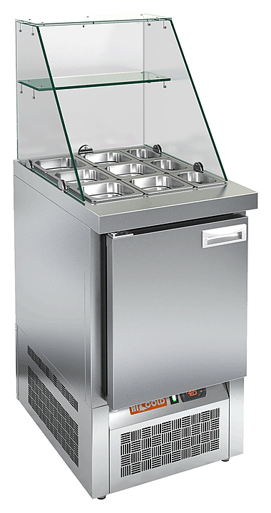 Стол для салатов HICOLD SLE3-1GN используется на предприятиях общественного питания и торговли для охлаждения и кратковременного хранения ингредиентов, используемых для приготовления салатов, закусок и сэндвичей, а также других скоропортящихся продуктов и напитков. Корпус и столешница выполнены из нержавеющей стали.
