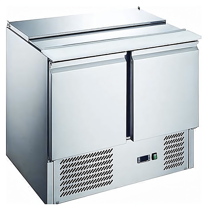 Холодильный стол для салатов Hurakan HKN-SL2 предназначен для обработки ингредиентов, используемых для приготовления салатов, охлаждения и кратковременного хранения скоропортящихся продуктов и напитков на предприятиях общественного питания и торговли. Модель оснащена двумя дверьми, отсеками для гастроемкостей и плоской прямоугольной крышкой. Столешница изготовлена из нержавеющей стали.