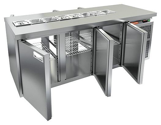 Стол для салатов HICOLD SL2T-111/GN используется на предприятиях общественного питания и торговли для хранения и обработки ингредиентов, используемых для приготовления пиццы, салатов и других блюд, а также для охлаждения и кратковременного хранения скоропортящихся продуктов и напитков. Модель совмещает в себе рабочую поверхность и охлаждаемый объем, что значительно упрощает работу повара, так как все необходимые компоненты всегда находятся под рукой. Корпус и столешница выполнены из нержавеющей стали.