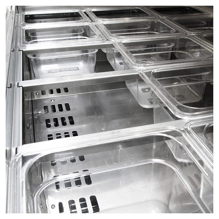 - Увеличенный объем оборудования позволил добавить третий ряд гастроемкостей GN 1/6