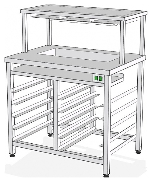Фасовочный стол RoboLabs СФ-100Т предназначен для кратковременного хранения и нарезки ингридиентов для бургеров и фасовки готовых продуктов на предприятиях общественного питания и торговли. Пристенная модель оснащена нейтральной ванной, тепловой поверхностью, подсветкой и полкой. Корпус выполнен из нержаваеющей стали AISI 430.