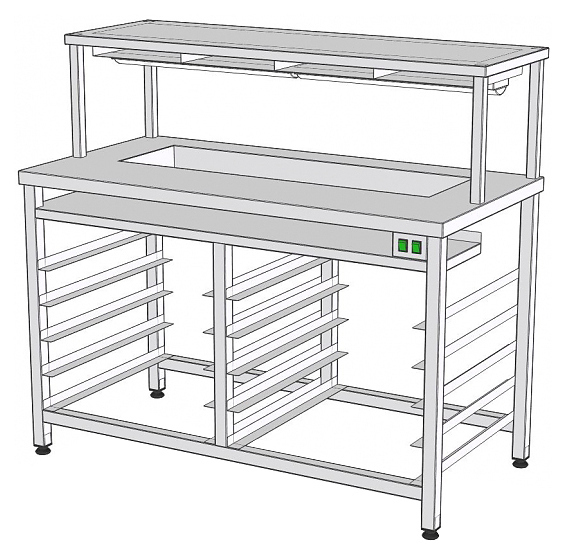 Фасовочный стол RoboLabs СФ-140Т предназначен для кратковременного хранения и нарезки ингридиентов для бургеров и фасовки готовых продуктов на предприятиях общественного питания и торговли. Пристенная модель оснащена нейтральной ванной, тепловой поверхностью, подсветкой и полкой. Корпус выполнен из нержаваеющей стали AISI 430.
