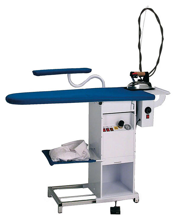 Профессиональный гладильный стол EOLO TS-01 используется в прачечных, отелях, гостевых домах и отелях для глажки белья и одежды. Модель оснащена сменным многослойным высокотемпературным чехлом, большой подставкой для парогенератора, полкой для белья, рукавной платформой и колесиками для перемещения. Гладильная поверхность выполнена из специального паропропускающего материала, подставка - из нержавеющей стали.