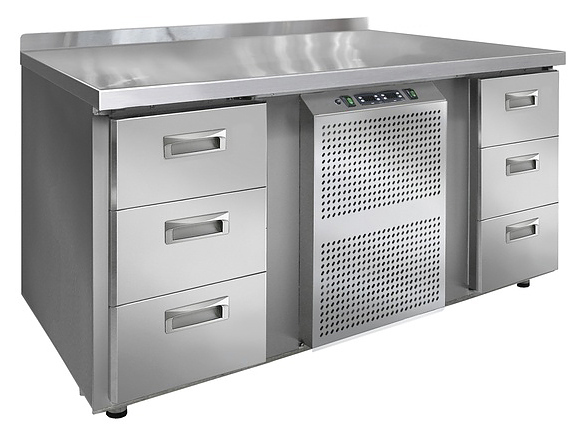 Холодильно-морозильный стол Finist КХС-700-0-3/0-3 предназначен для хранения замороженных полуфабрикатов и предварительно охлажденных готовых блюд, заготовок для салатов, молочной продукции и напитков на предприятиях общественного питания и торговли. Модель сочетает в себе 2 независимых рабочих объема и оснащена 2 панелями управления для регулировки температуры в камерах. Оборудование полностью выполнено из высококачественной пищевой нержавеющей стали.