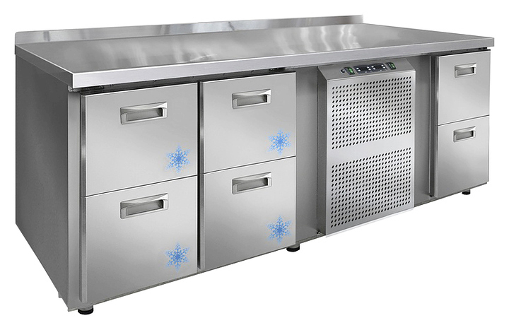 Холодильно-морозильный стол Finist КХС-700-2/4 предназначен для хранения замороженных полуфабрикатов и предварительно охлажденных готовых блюд, заготовок для салатов, молочной продукции и напитков на предприятиях общественного питания и торговли. Модель сочетает в себе 2 независимых рабочих объема и оснащена 2 панелями управления для регулировки температуры в камерах. Оборудование полностью выполнено из высококачественной пищевой нержавеющей стали.