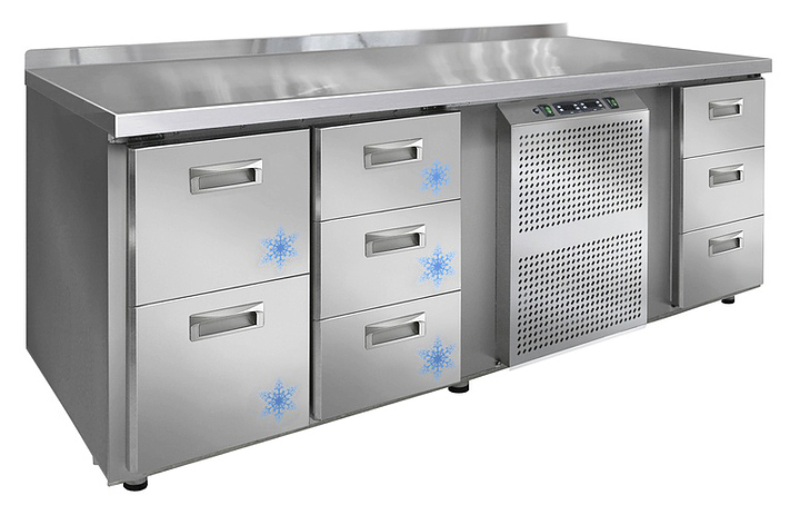 Холодильно-морозильный стол Finist КХС-700-3/5 предназначен для хранения замороженных полуфабрикатов и предварительно охлажденных готовых блюд, заготовок для салатов, молочной продукции и напитков на предприятиях общественного питания и торговли. Модель сочетает в себе 2 независимых рабочих объема и оснащена 2 панелями управления для регулировки температуры в камерах. Оборудование полностью выполнено из высококачественной пищевой нержавеющей стали.