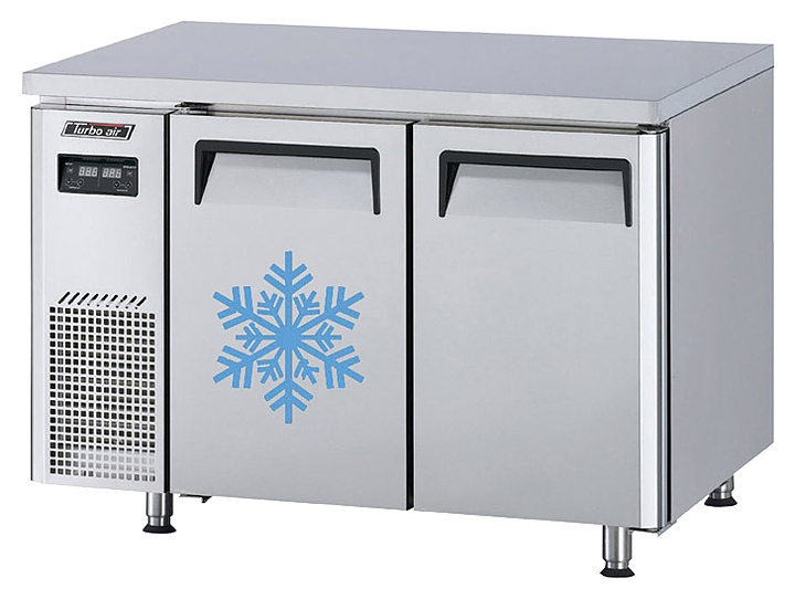 Холодильно-морозильный стол Turbo air KURF12-2 состоит из рабочей поверхности, на которой можно раскатывать тесто и обрабатывать ингредиенты для приготовления блюд, и камеры, предназначенной для заморозки, охлаждения и хранения продуктов, полуфабрикатов, мороженого и напитков на предприятиях пищевой промышленности, общественного питания и торговли. Корпус выполнен из нержавеющей стали с применением пожаробезопасных стенок толщиной 60 мм и уплотнения из теплоэффективного АБС-пластика (акрилонитрилбутадиенстирола), не пропускающего конденсата, оборотная сторона и низ - из гальванизированной стали, пол - из нержавеющей стали с алюминиевыми вставками по бокам и сзади, регулируемые полки - из толстой стальной проволоки с виниловым покрытием, 4 регулируемые ножки - из нержавеющей стали.