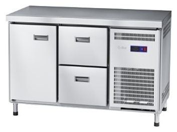 Холодильный стол Abat СХС-60-01 предназначен для раскатки теста, обработки ингредиентов для приготовления блюд, охлаждения и кратковременного хранения скоропортящихся продуктов и напитков на предприятиях общественного питания и торговли. Модель оснащена неохлаждаемой рабочей поверхностью, 1 распашной дверцей с уплотнителями с магнитной вставкой, 1 распашной дверцей с уплотнителями с магнитной вставкой, ящиком 1/2, 2 регулируемыми по высоте полками-решетками и регулируемыми по высоте ножками.