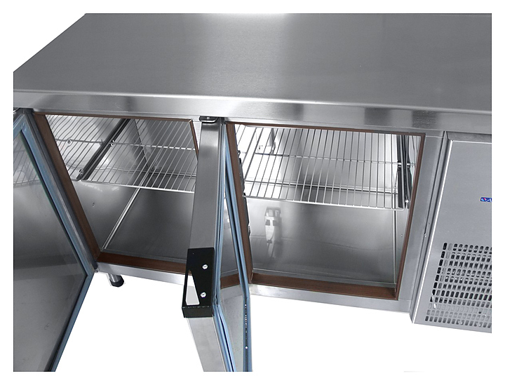 Конструкция выполнена из высококачественной нержавеющей стали. Изоляция стенок и полости стола выполнена методом заливки пенополиуретаном.