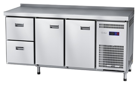 Холодильный стол Abat СХС-60-02 предназначен для раскатки теста, обработки ингредиентов для приготовления блюд, охлаждения и кратковременного хранения скоропортящихся продуктов и напитков на предприятиях общественного питания и торговли. Модель оснащена неохлаждаемой рабочей поверхностью, 2 распашными дверцами с уплотнителями с магнитной вставкой, 2 ящиками и регулируемыми по высоте ножками.