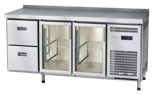 Стол холодильный Abat СХС-60-02 (2 двери-стекло, 2 ящика, борт)