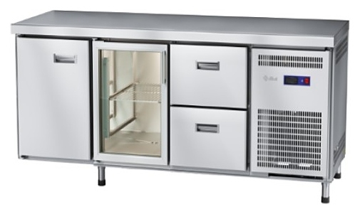 Холодильный стол Abat СХС-60-02 предназначен для раскатки теста, обработки ингредиентов для приготовления блюд, охлаждения и кратковременного хранения скоропортящихся продуктов и напитков на предприятиях общественного питания и торговли. Модель оснащена неохлаждаемой рабочей поверхностью, 2 ящиками слева, распашной стеклянной дверцей с уплотнителями с магнитной вставкой посередине, распашной дверцей с уплотнителями с магнитной вставкой справа и регулируемыми по высоте ножками.