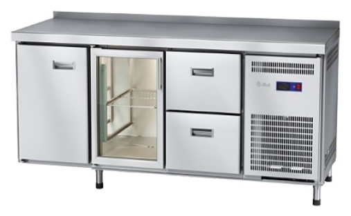 Холодильный стол Abat СХС-60-02 предназначен для раскатки теста, обработки ингредиентов для приготовления блюд, охлаждения и кратковременного хранения скоропортящихся продуктов и напитков на предприятиях общественного питания и торговли. Модель оснащена неохлаждаемой рабочей поверхностью, 2 ящиками слева, распашной стеклянной дверцей с уплотнителями с магнитной вставкой посередине, распашной дверцей с уплотнителями с магнитной вставкой справа и регулируемыми по высоте ножками.