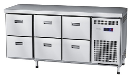 Холодильный стол Abat СХС-60-02 предназначен для раскатки теста, обработки ингредиентов для приготовления блюд, охлаждения и кратковременного хранения скоропортящихся продуктов и напитков на предприятиях общественного питания и торговли. Модель оснащена неохлаждаемой рабочей поверхностью, 6 ящиками (слева, посередине и справа) и регулируемыми по высоте ножками.