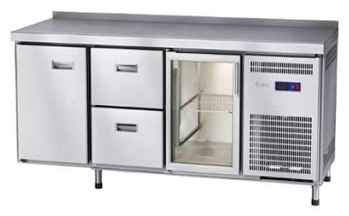 Холодильный стол Abat СХС-70-02 предназначен для раскатки теста, обработки ингредиентов для приготовления блюд, охлаждения и кратковременного хранения скоропортящихся продуктов и напитков на предприятиях общественного питания и торговли. Модель оснащена оснащена неохлаждаемой рабочей поверхностью, распашной стеклянной дверцей с уплотнителями с магнитной вставкой слева, 2 ящиками посередине, распашной дверцей с уплотнителями с магнитной вставкой справа и регулируемыми по высоте ножками.