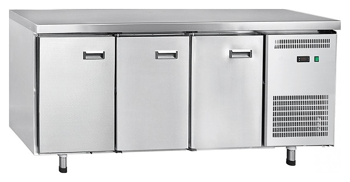 Холодильный стол Abat СХС-70-02 предназначен для раскатки теста, обработки ингредиентов для приготовления блюд, охлаждения и кратковременного хранения скоропортящихся продуктов и напитков на предприятиях общественного питания и торговли. Модель оснащена оснащена неохлаждаемой рабочей поверхностью, 3 распашными дверцами с уплотнителями с магнитной вставкой, 3 регулируемыми по высоте полками-решетками и регулируемыми по высоте ножками.