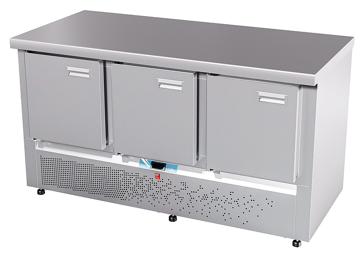 Холодильный стол Abat СХС-70Н-02 предназначен для раскатки теста, обработки ингредиентов для приготовления блюд, охлаждения и кратковременного хранения скоропортящихся продуктов и напитков на предприятиях общественного питания и торговли. Модель оснащена неохлаждаемой рабочей поверхностью, 3 распашными дверцами с доводчиками, 3 регулируемыми по высоте полками-решетками и регулируемыми по высоте ножками.