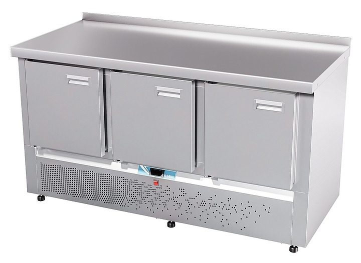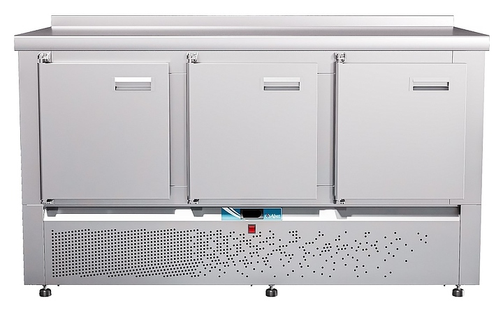 Холодильный стол Abat СХС-70Н-02 предназначен для раскатки теста, обработки ингредиентов для приготовления блюд, охлаждения и кратковременного хранения скоропортящихся продуктов и напитков на предприятиях общественного питания и торговли. Модель оснащена неохлаждаемой рабочей поверхностью, 3 распашными дверцами с доводчиками, 3 регулируемыми по высоте полками-решетками и регулируемыми по высоте ножками.