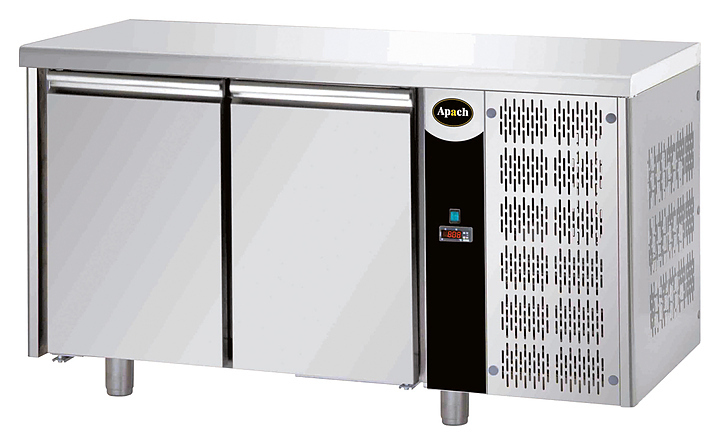 Холодильный стол Apach AFM 02 предназначен для раскатки теста, обработки, охлаждения и кратковременного хранения продуктов, полуфабрикатов и напитков на предприятиях общественного питания и торговли. Модель с электронной панелью управления оснащена самозакрывающимися дверями с магнитным уплотнителем. Корпус и внутренняя камера изготовлены из нержавеющей стали AISI 306, изоляция - из пенополиуретана толщиной 40 мм.