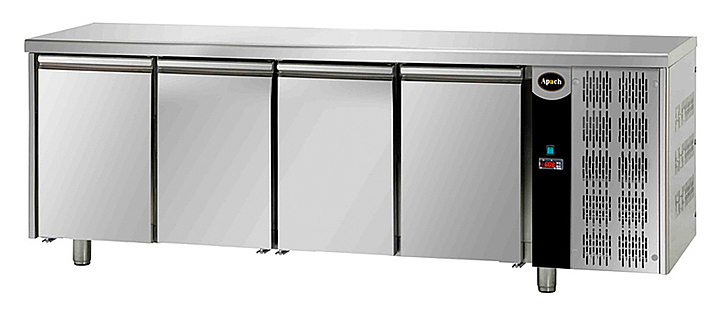 Холодильный стол Apach AFM 04 предназначен для раскатки теста, обработки, охлаждения и кратковременного хранения продуктов, полуфабрикатов и напитков на предприятиях общественного питания и торговли. Модель с электронной панелью управления оснащена самозакрывающимися дверями с магнитным уплотнителем. Корпус и внутренняя камера изготовлены из нержавеющей стали AISI 306, изоляция - из пенополиуретана толщиной 40 мм.