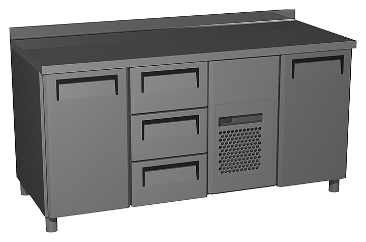 Холодильный стол Carboma T70 M3-1 9006 (3GN/NT 331) предназначен для раскатки теста, обработки ингредиентов для приготовления блюд, охлаждения и кратковременного хранения скоропортящихся продуктов и напитков на предприятиях общественного питания и торговли. Модель оснащена дверью с доводчиком и регулируемыми по высоте ножками высотой от 90 до 110 мм. Цельнозаливной корпус выполнен из оцинкованной стали толщиной 50 мм, столешница - из нержавеющей стали.