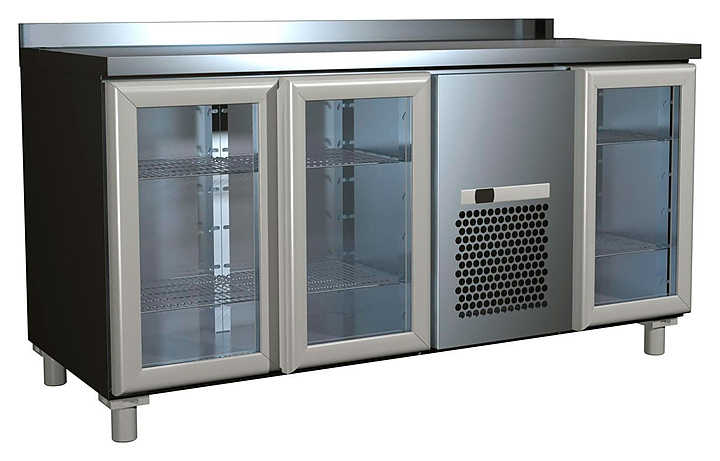 Холодильный стол Сarboma T70 M3-1-G 0430 (3GNG/NT 111) предназначен для раскатки теста, обработки ингредиентов для приготовления блюд, охлаждения и кратковременного хранения скоропортящихся продуктов и напитков на предприятиях общественного питания и торговли. Модель оснащена 9 полками и регулируемыми ножками высотой от 90 до 110 мм. Цельнозаливной корпус выполнен из нержавеющей стали с теплоизоляцией из пенополиуретана, дверцы - из стекла.