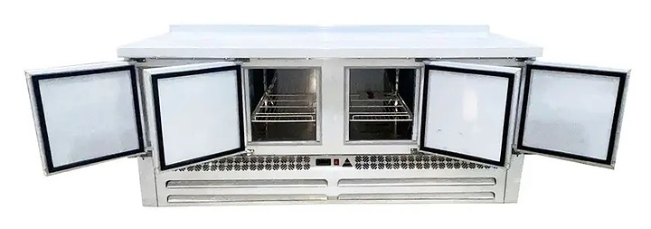 Холодильный стол CLSY LUXE Workbench 1,970 предназначен для обработки ингредиентов в процессе приготовления блюд, а также кратковременного хранения скоропортящихся продуктов и напитков на предприятиях общественного питания и торговли. Модель оснащена удобной и простой в использовании электронной панелью управления и четырьмя распашными дверями с доводчиками. Корпус и столешница выполнены из нержавеющей стали марки AISI 430.