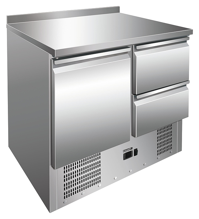 Холодильный стол Cooleq S901-2D предназначен для хранения пищевых продуктов и напитков, а также приготовления блюд на предприятиях общественного питания, торговли и пищевых производствах. Модель оснащена агрегатным отсеком снизу, столешницей с бортом, 1 дверью и 2 ящиками. Секция с дверью оснащена 1 полкой и 1 парой направляющих под GN 1/1. Столешница служит рабочей поверхностью, что экономит пространство. Корпус выполнен из нержавеющей стали, которая отличается прочностью и долговечностью, не впитывает загрязнения и легко очищается.