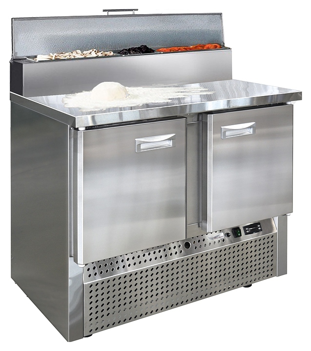 Холодильный стол Finist СХСнпц-700-2 предназначен для хранения скоро портящихся полуфабрикатов из мяса, рыбы и других ингридиентов для приготовления пиццы на предприятиях общественного питания и торговли. Модель оснащена расположенным снизу агрегатным отсеком, столешницей с отсеком для гастроемкостей с крышкой, 2 холодильными камерами с распашными дверцами, устойчивыми ножками с подпятниками, кабелем питания с евровилкой и кнопочной панелью управления с цифровым дисплеем. Корпус выполнен из высококачественной нержавеющей стали.