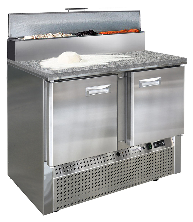 Холодильный стол Finist СХСнпцг-800-2 используется на предприятиях общественного питания и торговли для хранения ингредиентов при приготовлении пиццы. Модель оснащена 2 распашными дверьми, нижним расположением агрегата, столешницей с отсеком для гастроемкостей и крышкой. Цельнозаливной корпус выполнен из высококачественной нержавеющей стали, столешница - из гранита.