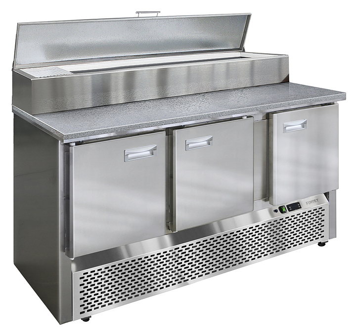 Холодильный стол Finist СХСнпцг-800-3 используется на предприятиях общественного питания и торговли для хранения ингредиентов при приготовлении пиццы. Модель оснащена 3 распашными дверьми, нижним расположением агрегата, столешницей с отсеком для гастроемкостей и крышкой. Цельнозаливной корпус выполнен из высококачественной нержавеющей стали, столешница - из гранита.
