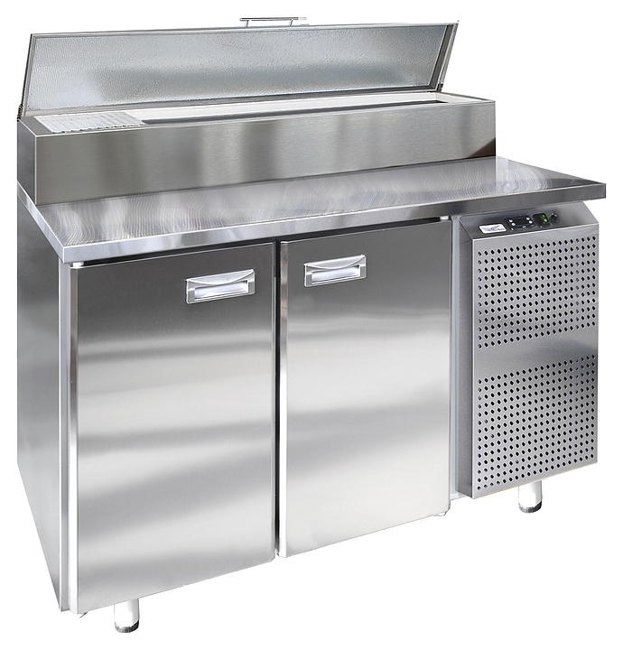 Холодильный стол Finist СХСпц-700-2 предназначен для хранения скоро портящихся полуфабрикатов из мяса, рыбы и других ингридиентов для приготовления пиццы на предприятиях общественного питания и торговли. Модель оснащена расположенным сбоку агрегатным отсеком, столешницей с отсеком для гастроемкостей с крышкой, 2 холодильными камерами с распашными дверцами, устойчивыми ножками с подпятниками, кабелем питания с евровилкой и кнопочной панелью управления с цифровым дисплеем. Корпус выполнен из высококачественной нержавеющей стали.
