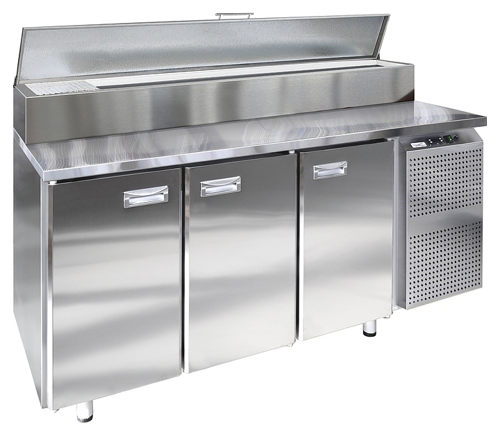 Холодильный стол Finist СХСпц-700-3 предназначен для хранения скоро портящихся полуфабрикатов из мяса, рыбы и других ингридиентов для приготовления пиццы на предприятиях общественного питания и торговли. Модель оснащена расположенным сбоку агрегатным отсеком, столешницей с отсеком для гастроемкостей с крышкой, 3 холодильными камерами с распашными дверцами, устойчивыми ножками с подпятниками, кабелем питания с евровилкой и кнопочной панелью управления с цифровым дисплеем. Корпус выполнен из высококачественной нержавеющей стали.