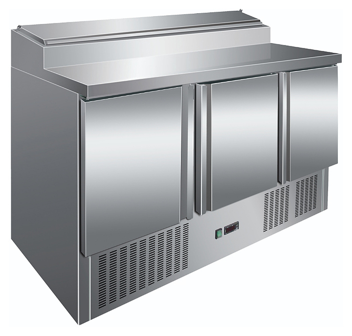 Холодильный стол Foodatlas PS300 предназначен для кратковременного хранения и охлаждения продуктов питания на предприятиях общественного питания. Модель оснащена агрегатным отсеком снизу, холодильной камерой с 3 распашными дверями и дополнительными полками и контейнерами для мелких ингредиентов. Система охлаждения равномерно распределяет холод по всей поверхности, что гарантирует сохранение свежести ингредиентов и их оптимальную температуру. Встроенный цифровой дисплей с функцией регулировки температуры позволяет точно настроить внутренние условия хранения. Антибактериальное покрытие внутренних поверхностей препятствует развитию бактерий и плесени, обеспечивая высокий уровень гигиены. Столешница выполнена из нержавеющей стали, отличающейся прочностью и долговечностью, не впитывает запахи и грязь.