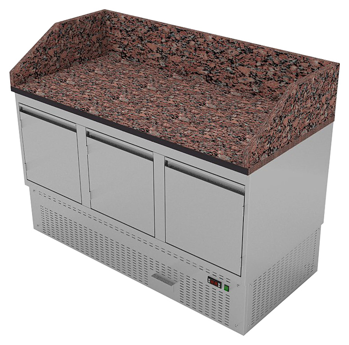 Холодильный стол для пиццы СОН4Г-197/4Д/Sр/ВСН серии Special предназначен для раскатки теста, хранения продуктов и обработки ингредиентов для приготовления пиццы на рабочей поверхности на предприятиях общественного питания. Корпус выполнен из нержавеющей стали AISI 430, задняя стенка - из стали с полимерным покрытием RAL, столешница - из гранита.