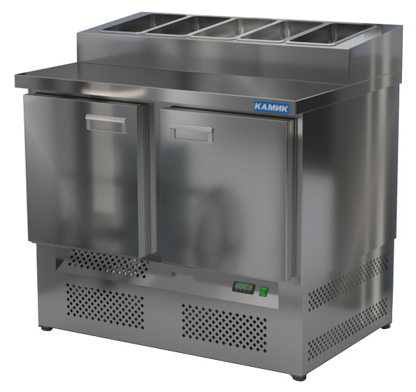 Холодильный стол КАМИК СОПН-201073 используется на предприятиях общественного питания и торговли для охлаждения и хранения продуктов, напитков и готовых блюд, а также для раскатки теста и обработки ингредиентов для приготовления пиццы. Конструкция разделена на секции, каждая секция с дверью оборудована сетчатой полкой и парой направляющих. Корпус выполнен из нержавеющей стали AISI 430 толщиной 1 мм, столешница - из нержавеющей стали AISI 304 толщиной 1 мм.