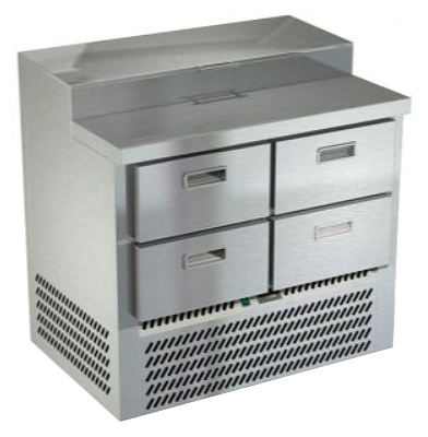 Холодильный стол Техно-ТТ СПН/П-126/04-1007 предназначен для обработки ингредиентов, используемых для приготовления пиццы, охлаждения и кратковременного хранения продуктов на предприятиях общественного питания и торговли. Модель оснащена коробом для установки гастроемкостей, крышкой, 4 выдвижными ящиками с доводчиками и регулируемыми по высоте ножками. Корпус и столешница выполнены из нержавеющей стали AISI 430, задняя стенка - из оцинкованной стали.