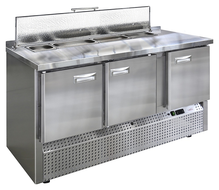Холодильный стол Finist СХСнс-700-3 предназначен для сохранения свежести ингредиентов для холодных закусок и салатов на предприятиях общественного питания и торговли. Модель оснащена расположенным снизу агрегатным отсеком, столешницей с задним бортом и отсеком под гастроемкости с крышкой, 3 холодильными камерами с распашными дверцами, устойчивыми ножками с подпятниками, кабелем питания с евровилкой и кнопочной панелью управления с цифровым дисплеем. Цельнозаливной корпус выполнен из высококачественной нержавеющей стали.