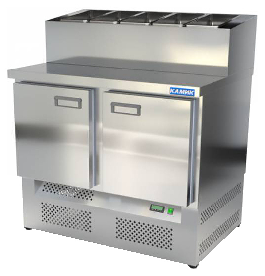 Холодильный стол КАМИК СОН-201063КН используется на предприятиях общественного питания и торговли для охлаждения, демонстрации и кратковременного хранения ингредиентов для приготовления салатов, напитков и готовых блюд. Конструкция разделена на секции, каждая секция с дверью оборудована сетчатой полкой и парой направляющих. Корпус выполнен из нержавеющей стали AISI 430 толщиной 1 мм, столешница - из нержавеющей стали AISI 304 толщиной 1,5 мм.