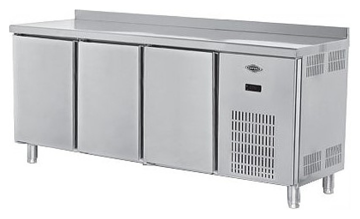 Холодильный стол Empero EMP.200.60.01-CLS предназначен для хранения продуктов и обработки ингредиентов на рабочей поверхности на предприятиях общественного питания и торговли. Модель оснащена бортом и 3 дверьми. Корпус выполнен из нержавеющей стали.