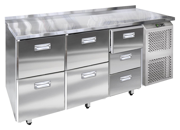 Холодильный стол Finist СХС-600-0/7 предназначен для хранения пищевых продуктов и напитков на предприятиях общественного питания, торговли и пищевых производствах. Модель оснащена 7 выдвижными ящиками с доводчиками, обеспечивающими гарантированное закрытие и поддержание заданной температуры в рабочем объеме стола. Передняя панель моторного отсека имеет большую площадь перфорации, что позволяет обеспечить холодильному агрегату поступление воздуха для охлаждения. Изделие выполнено из высококачественной пищевой нержавеющей стали, которая отличается прочностью и долговечностью, не впитывает загрязнения и легко очищается.