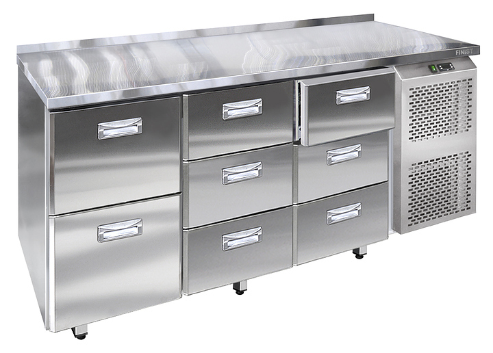Холодильный стол Finist СХС-600-0/8 предназначен для хранения пищевых продуктов и напитков на предприятиях общественного питания, торговли и пищевых производствах. Модель оснащена 8 выдвижными ящиками с доводчиками, обеспечивающими гарантированное закрытие и поддержание заданной температуры в рабочем объеме стола. Передняя панель моторного отсека имеет большую площадь перфорации, что позволяет обеспечить холодильному агрегату поступление воздуха для охлаждения. Изделие выполнено из высококачественной пищевой нержавеющей стали, которая отличается прочностью и долговечностью, не впитывает загрязнения и легко очищается.