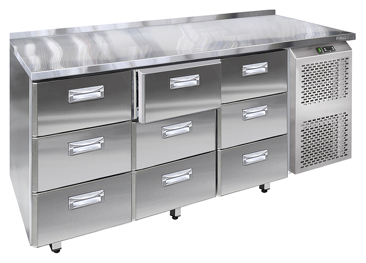 Холодильный стол Finist СХС-600-0/9 предназначен для хранения пищевых продуктов и напитков на предприятиях общественного питания, торговли и пищевых производствах. Модель оснащена 9 выдвижными ящиками с доводчиками, обеспечивающими гарантированное закрытие и поддержание заданной температуры в рабочем объеме стола. Передняя панель моторного отсека имеет большую площадь перфорации, что позволяет обеспечить холодильному агрегату поступление воздуха для охлаждения. Изделие выполнено из высококачественной пищевой нержавеющей стали, которая отличается прочностью и долговечностью, не впитывает загрязнения и легко очищается.